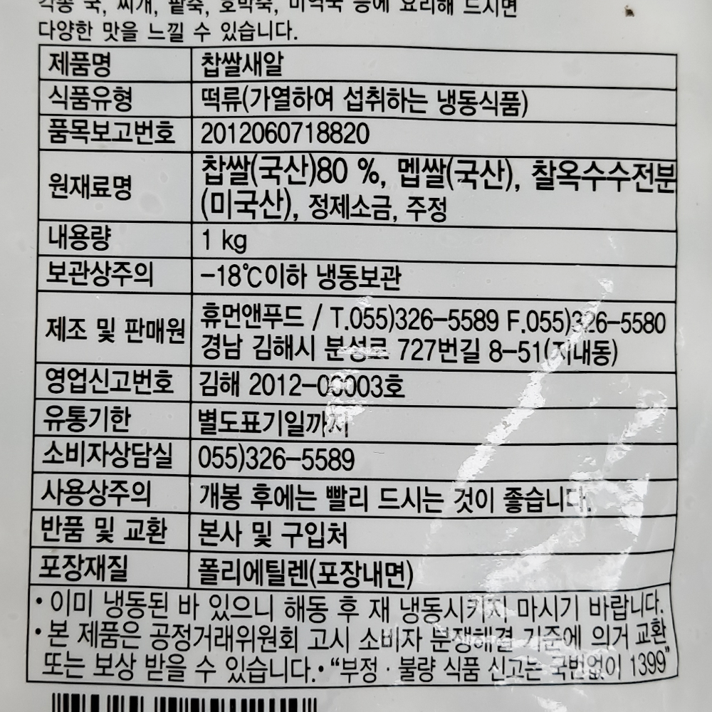 | 제품명 | 찹쌀새알 1kg(냉동)/휴먼앤푸드 |