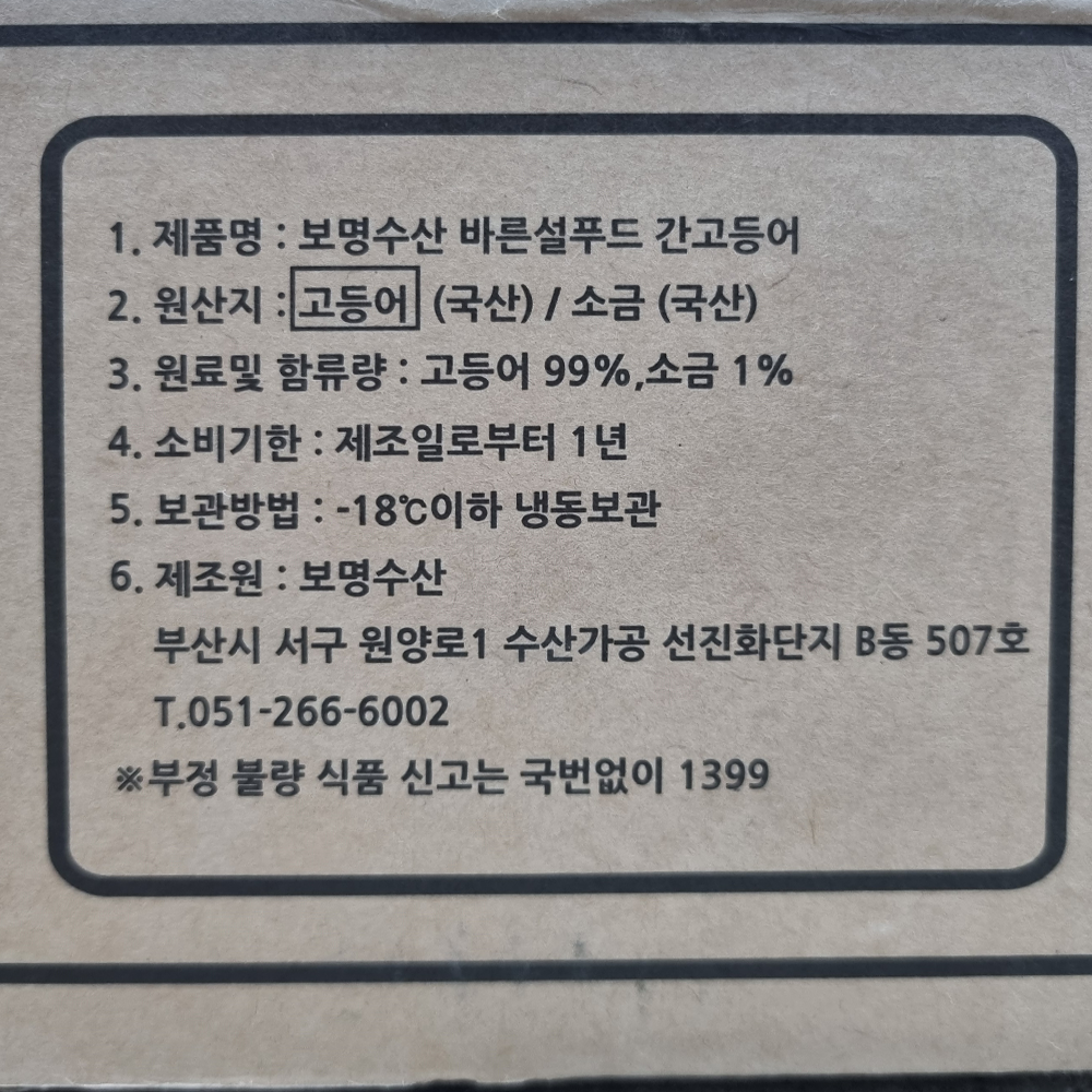 | 품목 또는 명칭 | 바른설푸드 국산 간고등어 20손(소) 10kg/보명수산 |