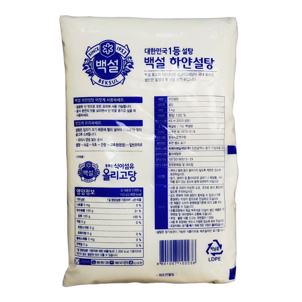 최고에요! 백설) 하얀설탕 3kg/CJ백설) 하얀설탕 3kg/CJ백설)... |
