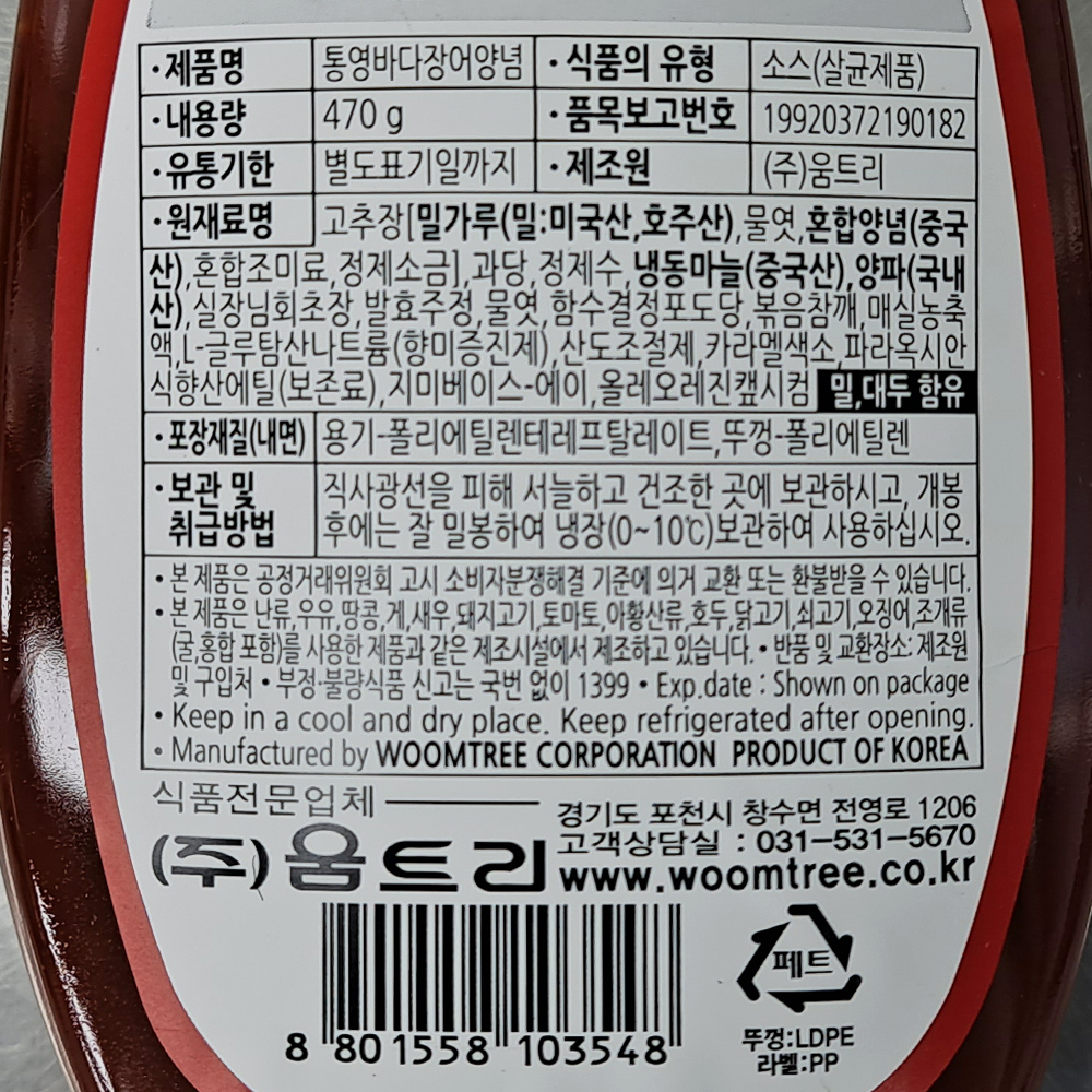 | 제품명 | 통영 바다장어양념 470g/움트리 |