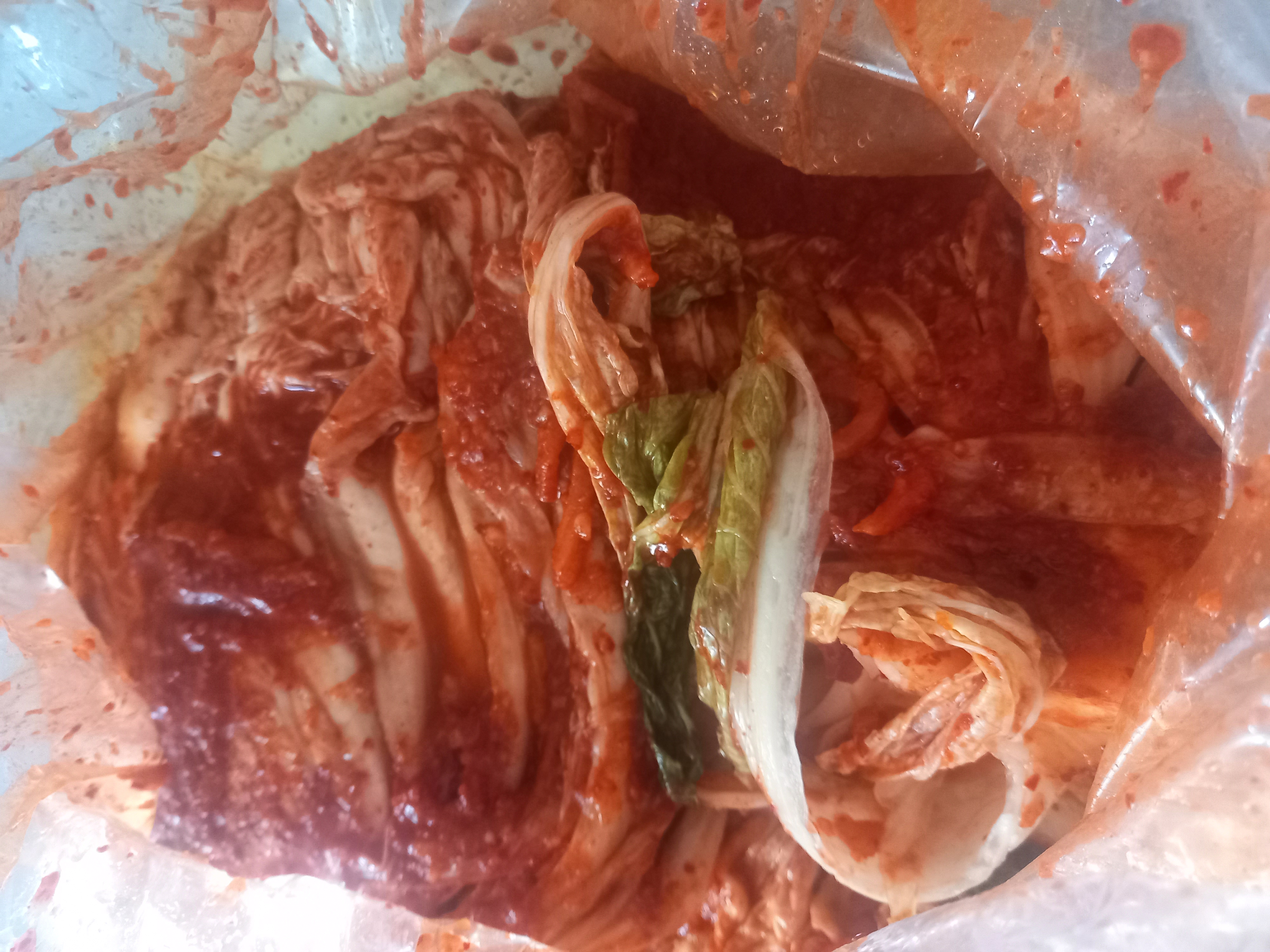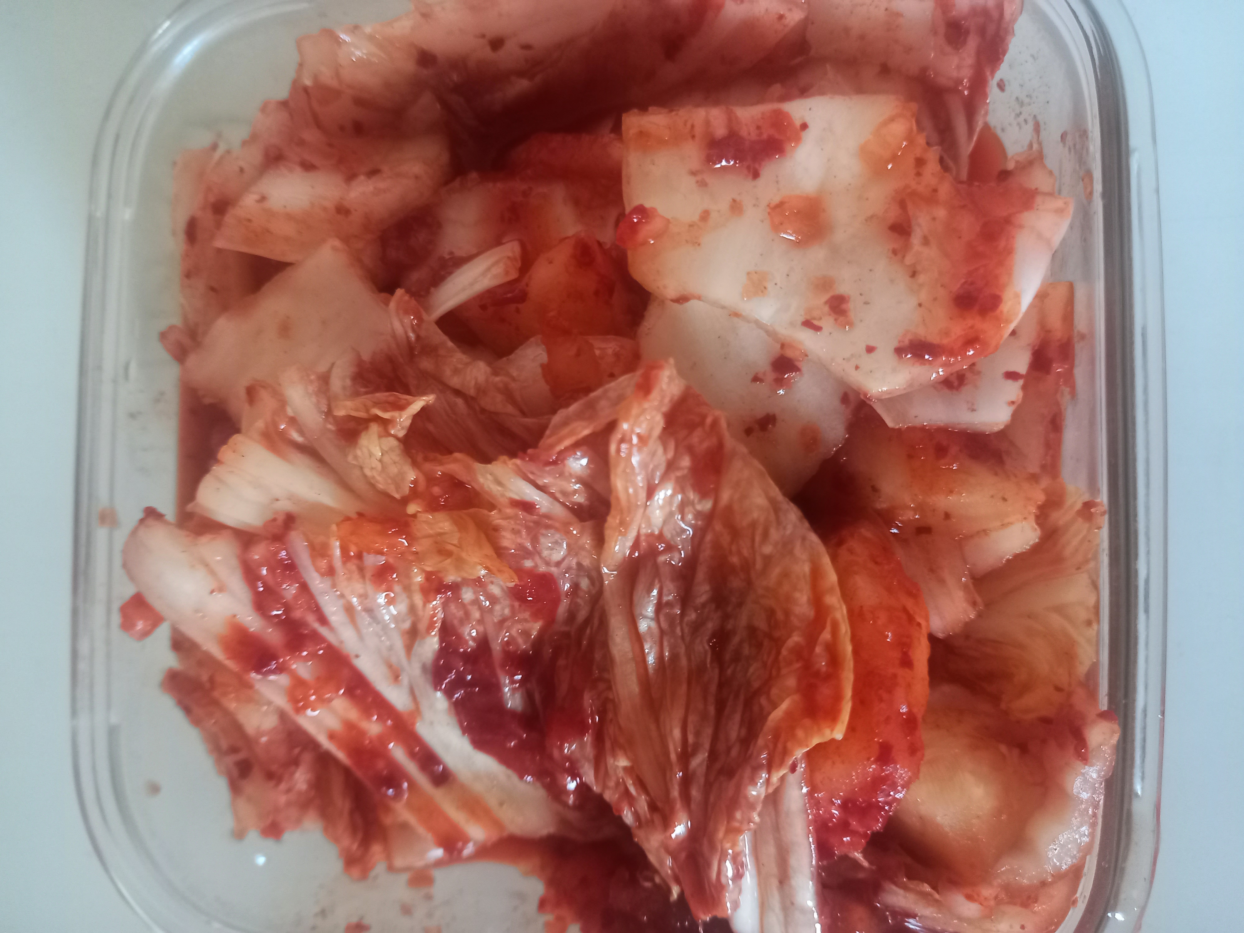 | 원재료명 및 함량(농수산물의 원산지 표시에 관한 법률에 따른 원산지 표시 포함) | 절임배추71.9%(배추92%,정제소금8%),무채5%,마늘4%,새우젓4%(새우75%,소금25%)고추가루3.5%,양파2.5%,멸치액젓2.5%(멸치75%,정제소금25%)파1.5%,생강1.5%,찹쌀풀1.5%,부추1%,물엿0.5%,설탕0.38%,L-글루타민산나트륨0.1%(향미증진제),잔탄검0.1%,사카린나트륨0.02%(감미료) |