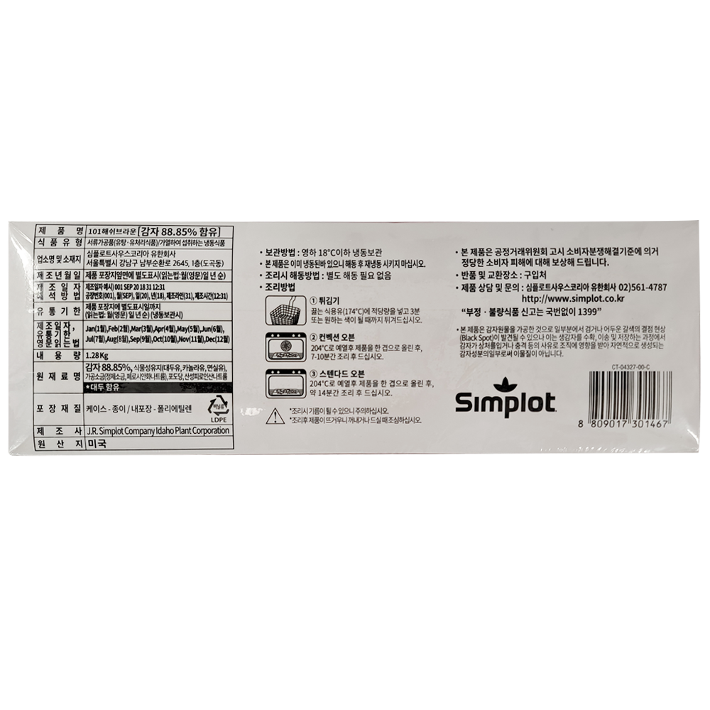 | 제품명 | 101·해쉬브라운 1.28kg/심플로트 |