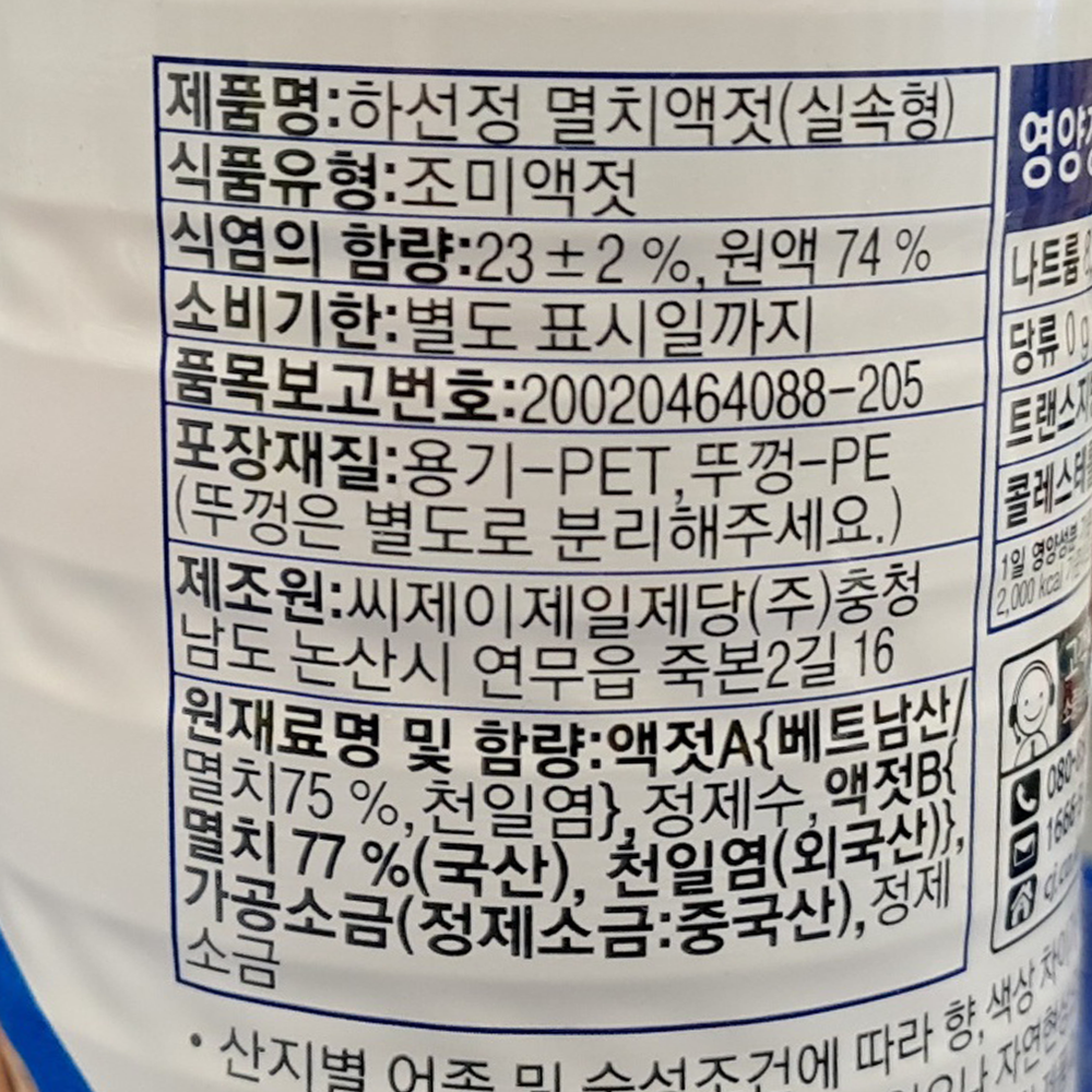 | 제품명 | 하선정) 멸치액젓 (실속형) 1kg/CJ |