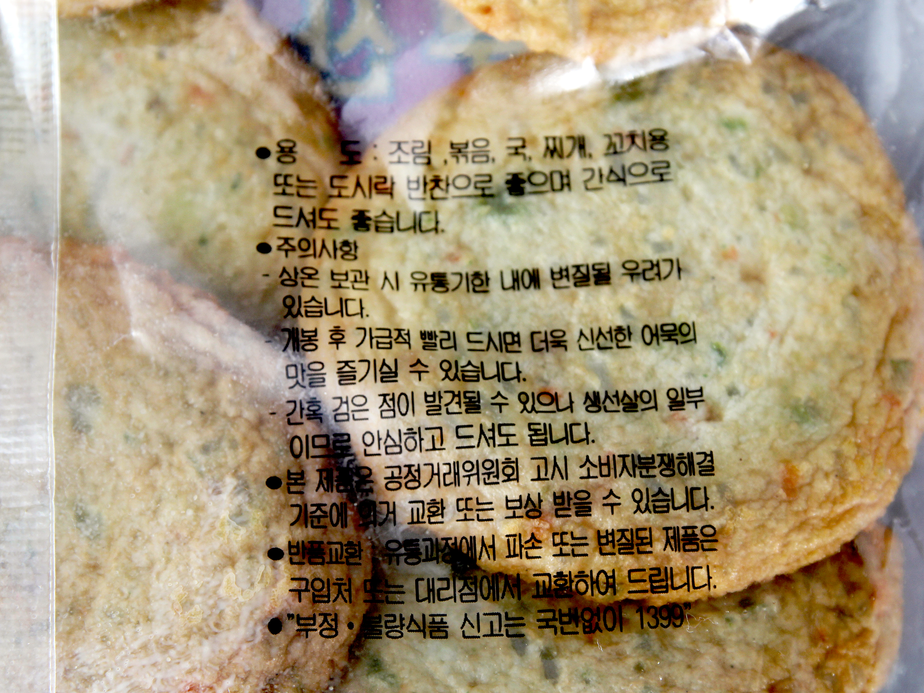 | 식품의 유형 | 어묵(비살균제품/ 유탕처리제품) |