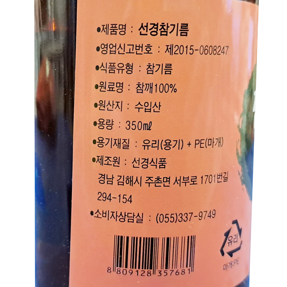 | 제품명 | 참기름 350ml (통깨100%)/선경식품 |