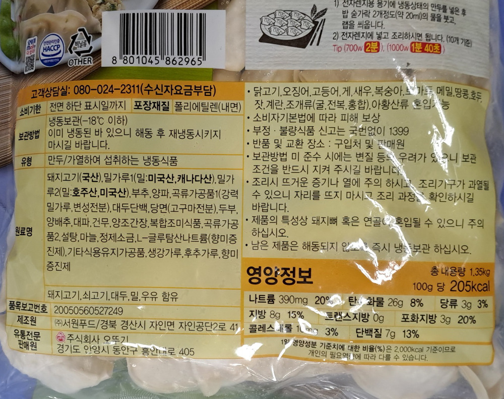 | 소비자안전을 위한 주의사항 | 보관시 주의사항:냉동 -18℃ 이하 |