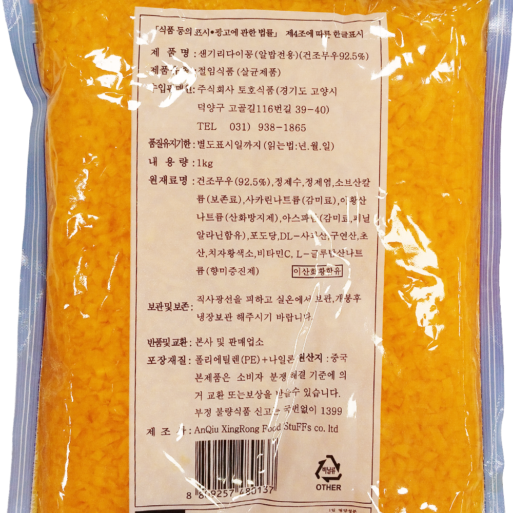 | 제품명 | 샌기리다이꽁 1kg(알밥용·쵸핑단무지)/토호식품 |