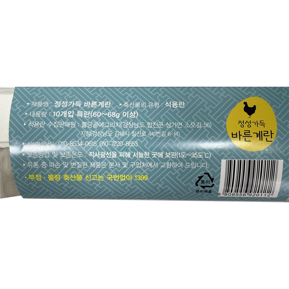 | 품목 또는 명칭 | 정성가득 바른계란 특란 10구/국내산 |