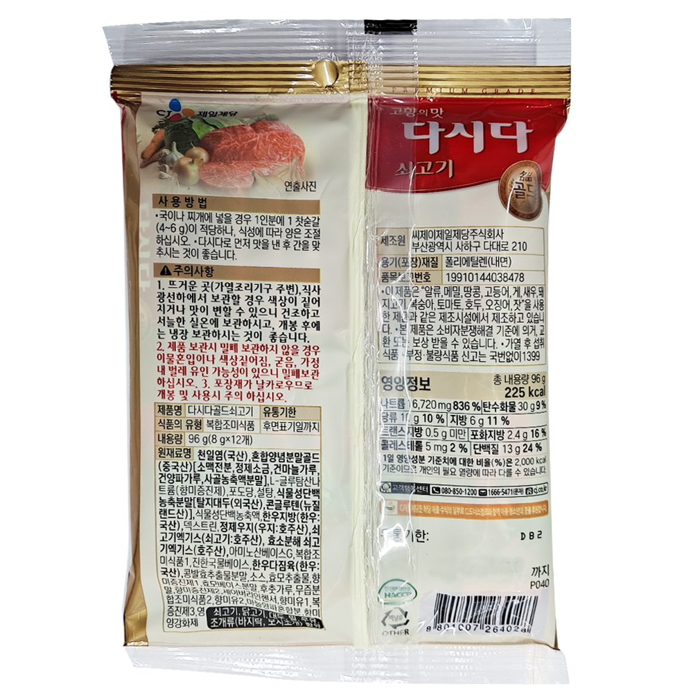 | 제품명 | 백설 명품골드 쇠고기다시다 스틱 96g/CJ |