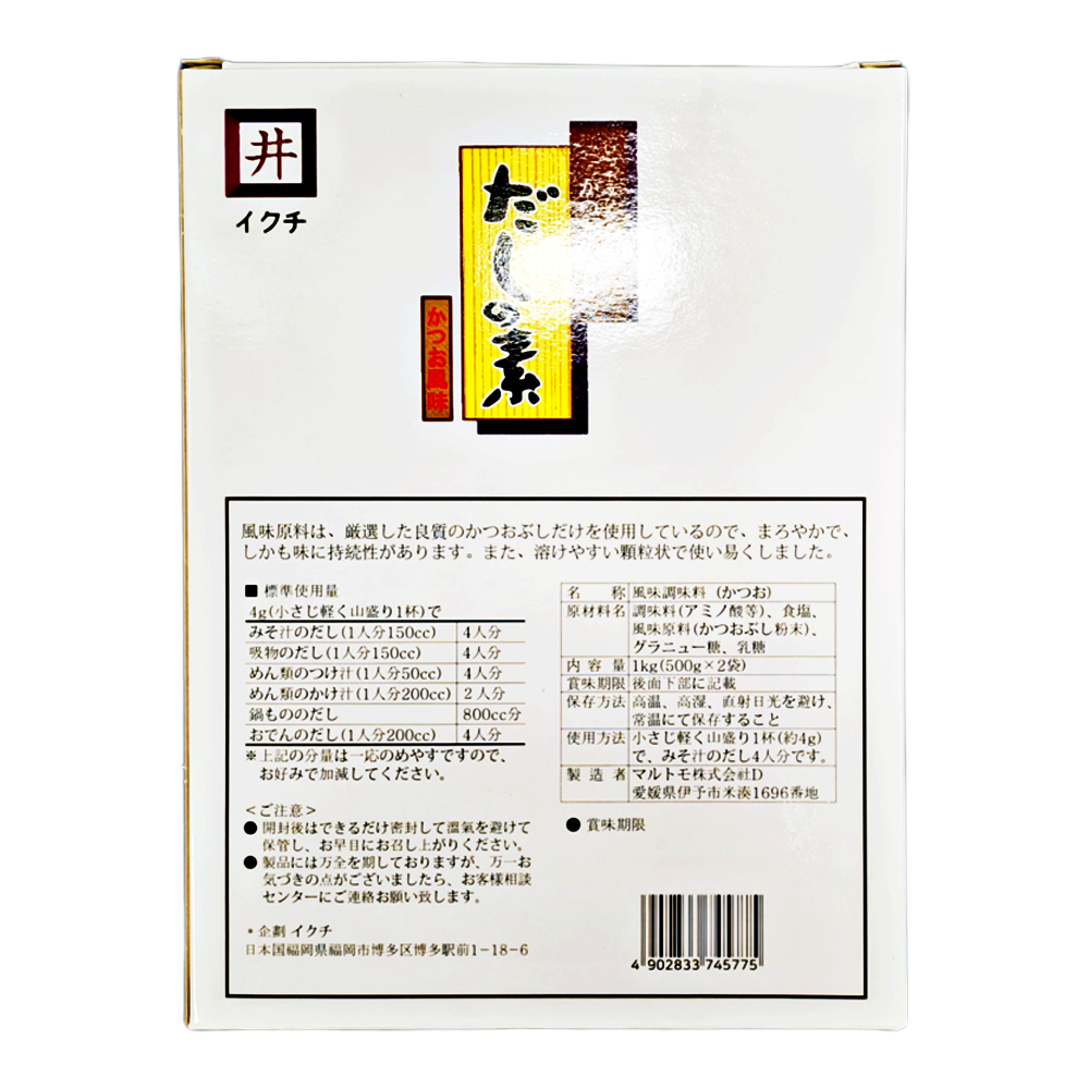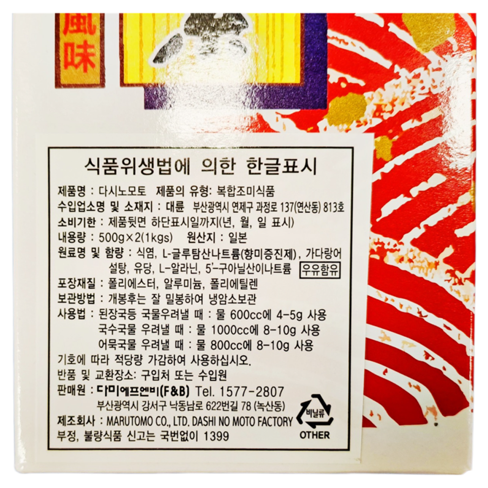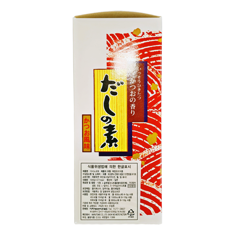 | 생산자 및 소재지(수입품의 경우 생산자, 수입자 및 제조국) | 원산지 : 일본산 제조사 : MARUTOMO CO., LTD. DASHI NO MOTO FACTORY |