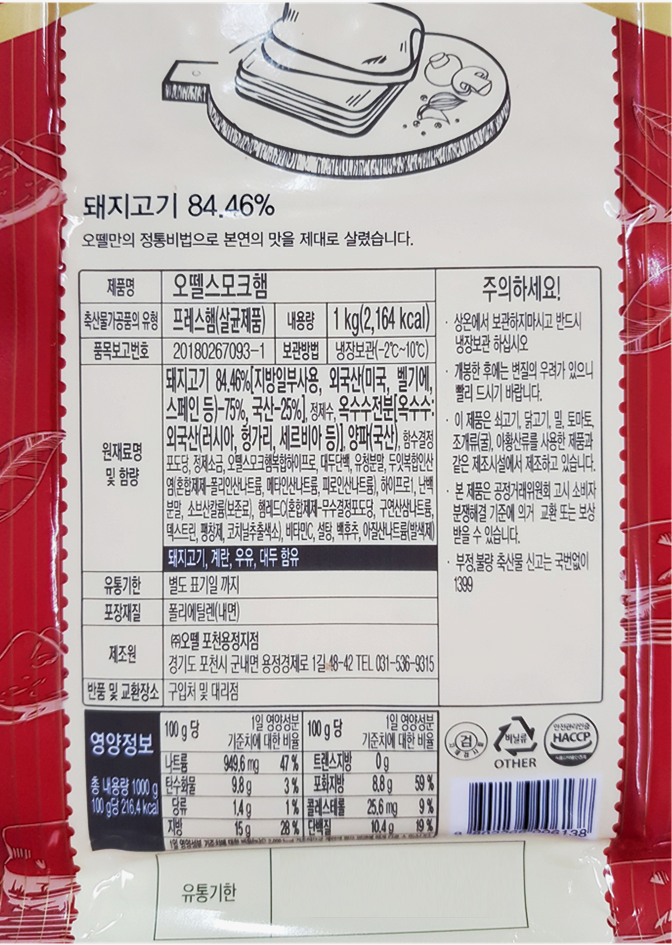 | 제품명 | 슬라이스 스모크햄 1kg/오뗄 |