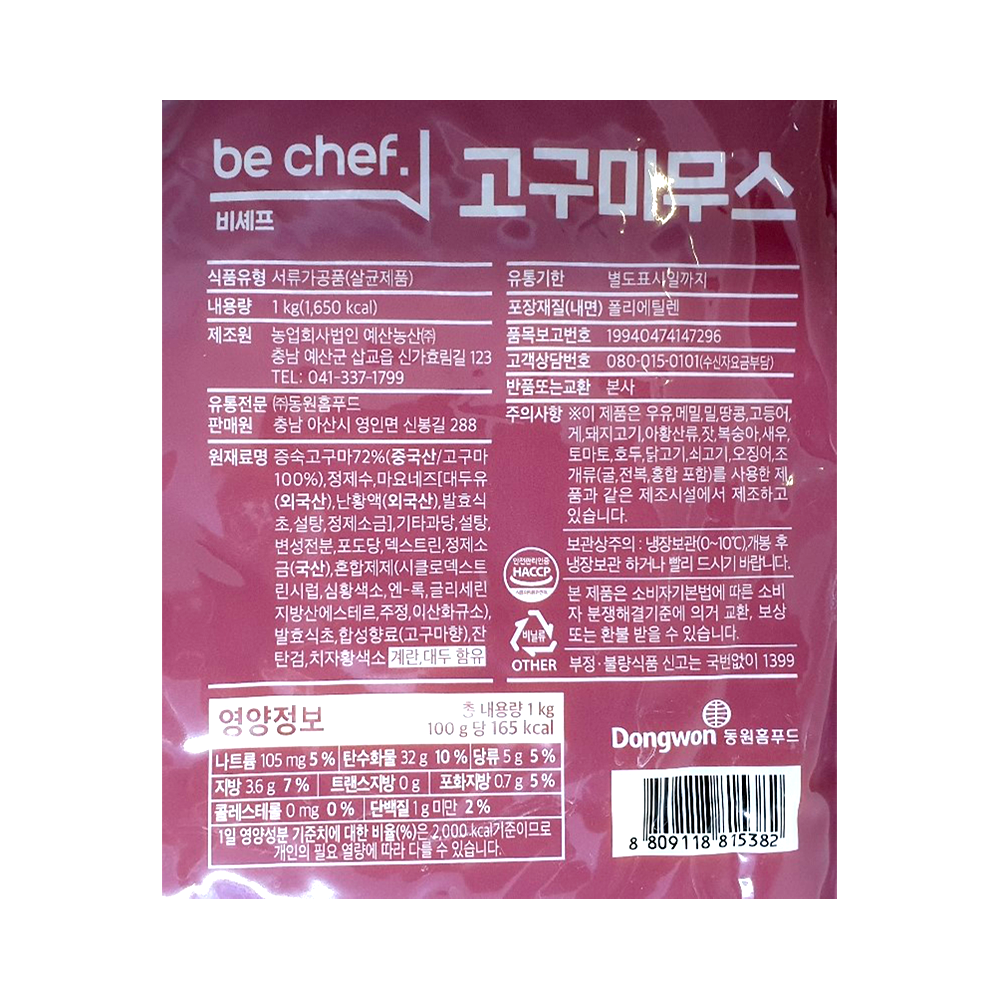 | 제품명 | 비세프 고구마무스 1kg/동원홈푸드 |