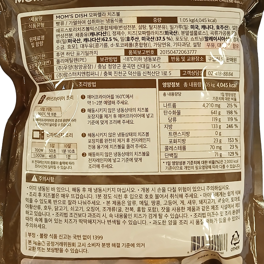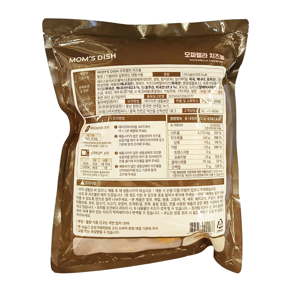 | 제품명 | 맘스터치@홈 모짜렐라 치즈볼 1.05kg/맘스터치 |