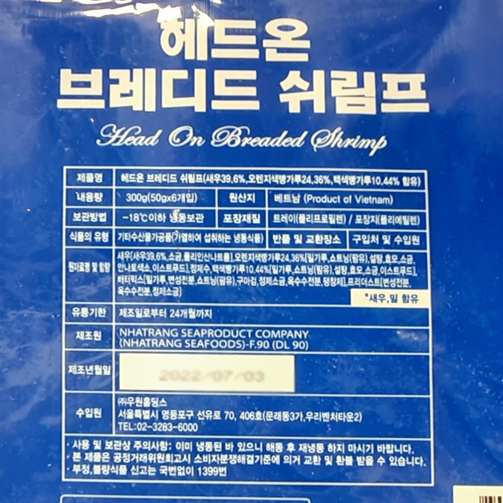 | 제품명 | H.O.브레디드 쉬림프 6미 300g/우원 |