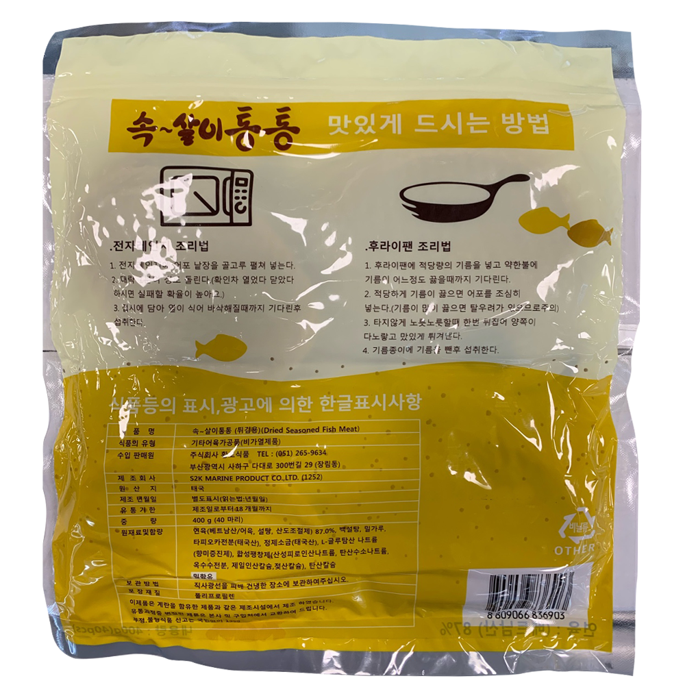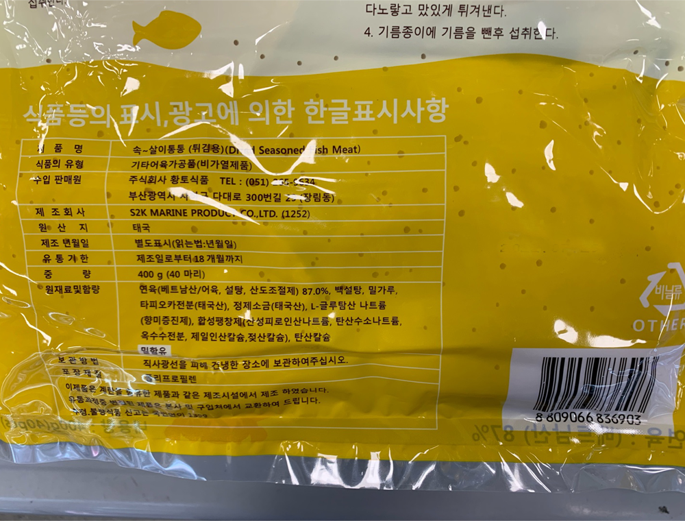 | 품목 또는 명칭 | 속 살이통통 400g(튀김용·와크다)/황토식품 |