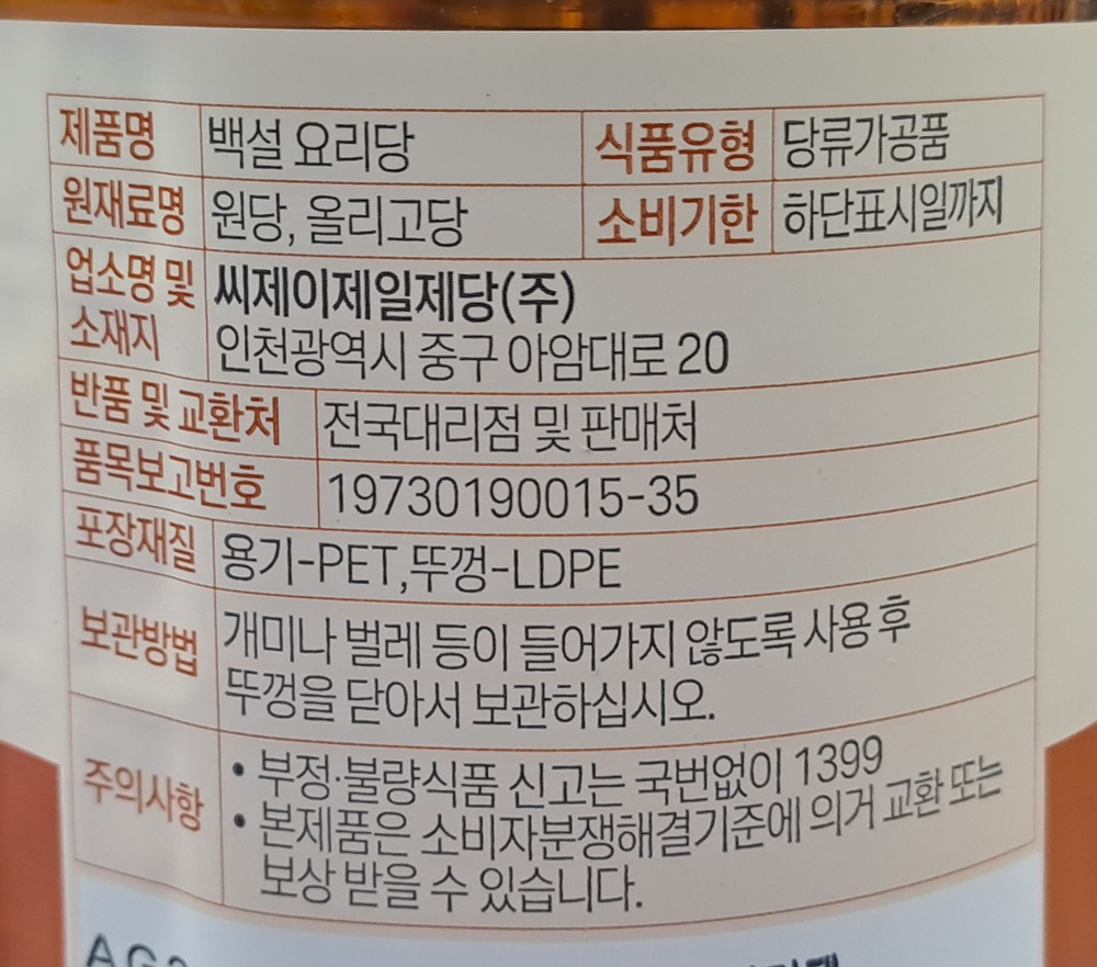 | 제품명 | 백설) 요리당 2.45kg/CJ |